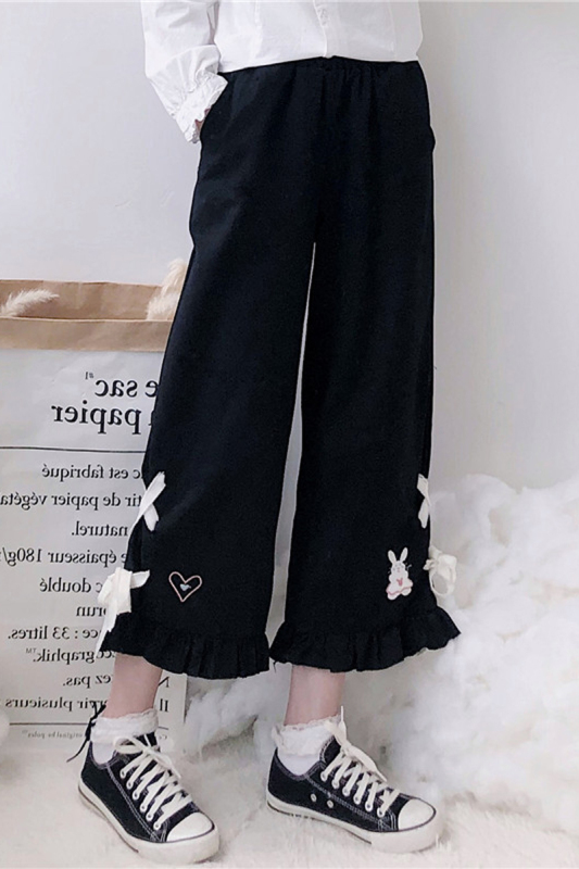 秋季2021新款宽松可爱裤子女学院风日系甜美高腰裤九分阔腿裤学生