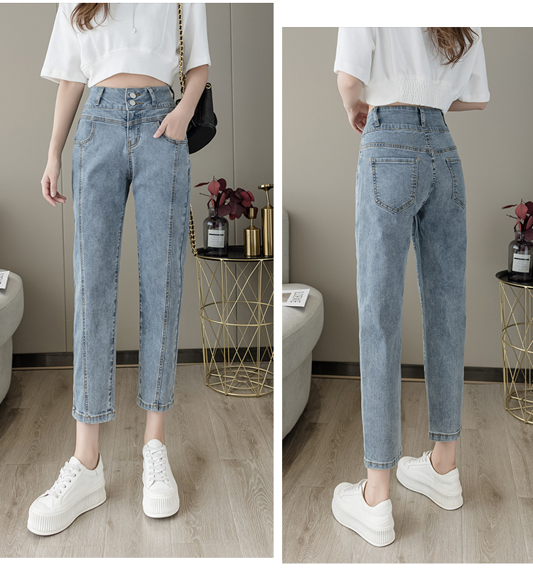 烟管牛仔裤女装直筒夏超高腰八分心机小个子显高早秋装2021年新款