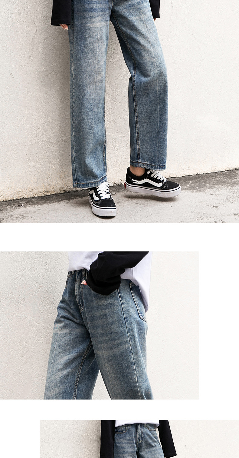 孜索2020秋季新款韩版复古chic牛仔裤女宽松百搭学生BF风直筒裤潮