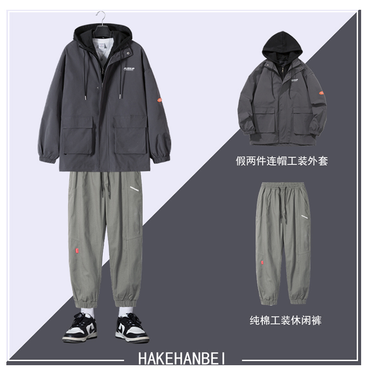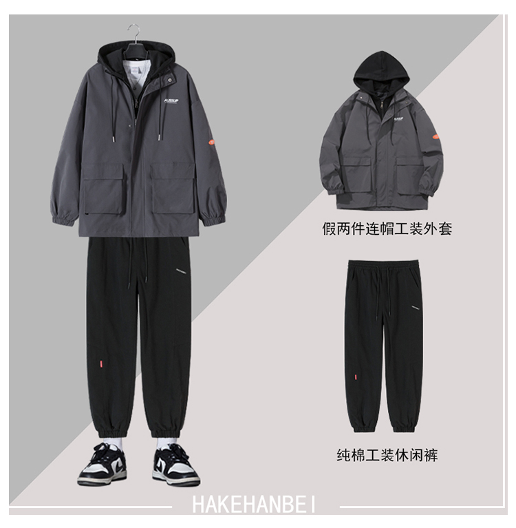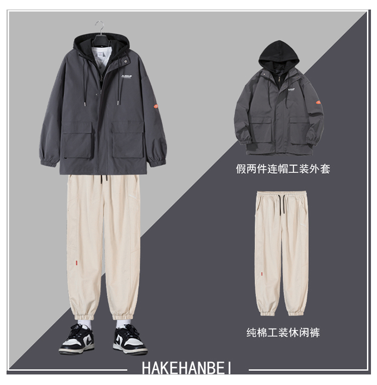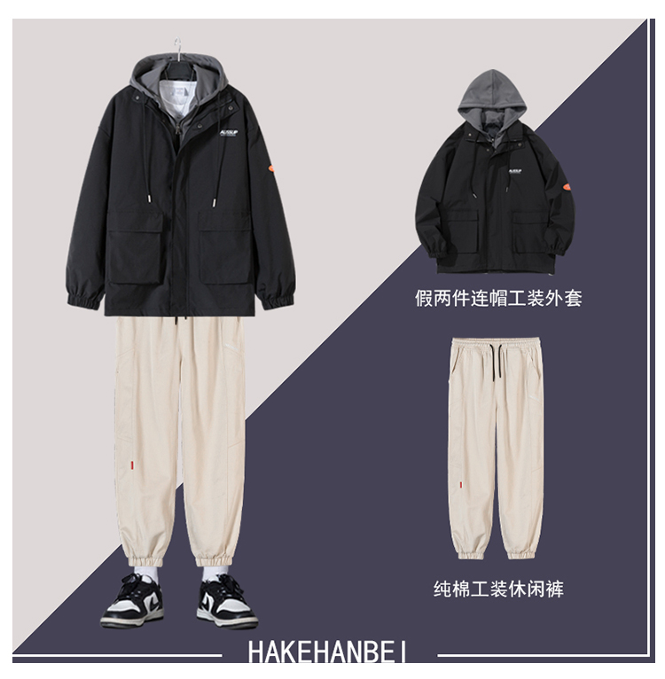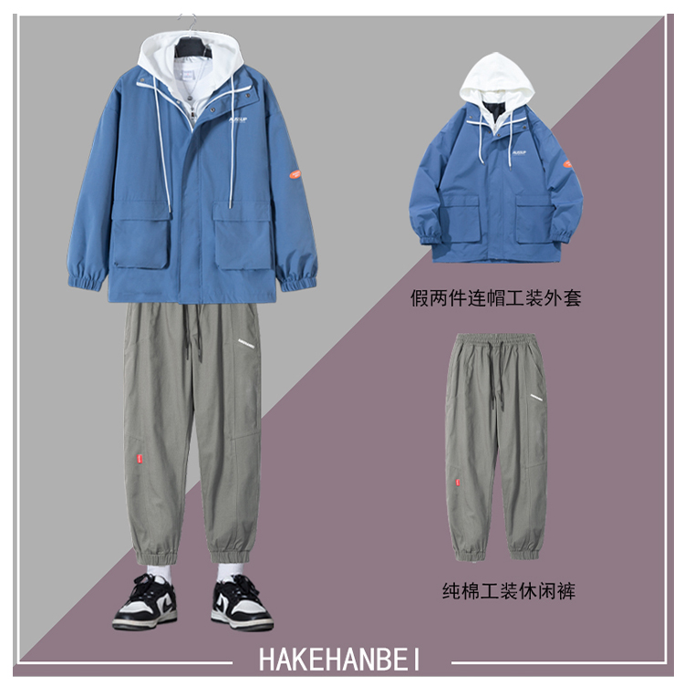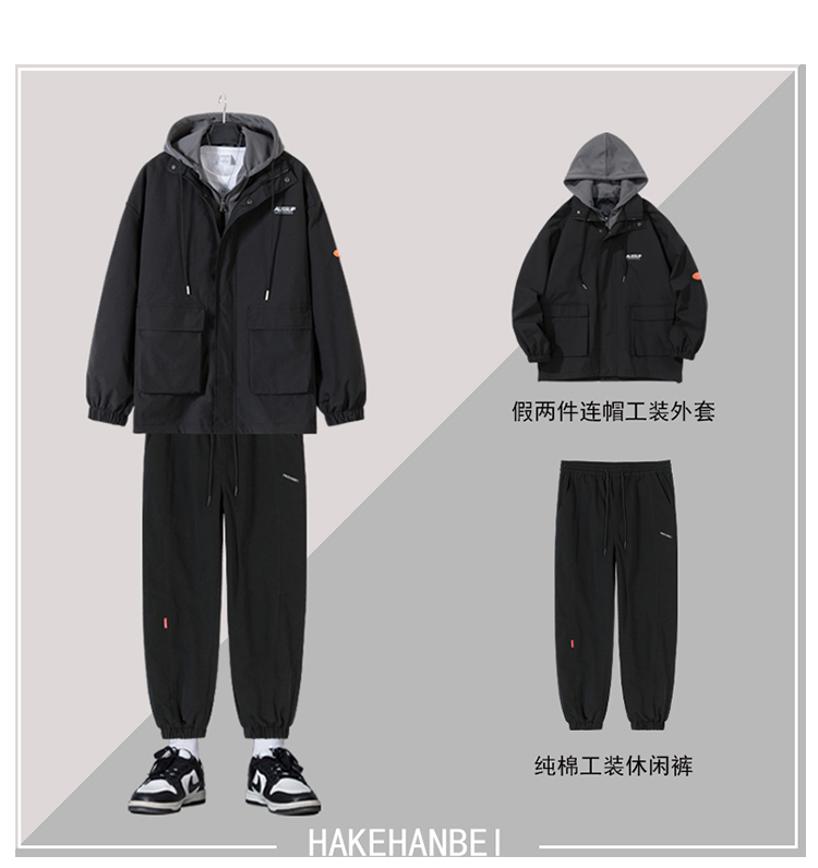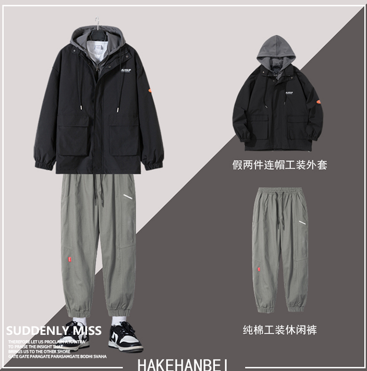 男装搭配一套秋装新款日系复古痞帅休闲运动时尚套装男宽松春秋季