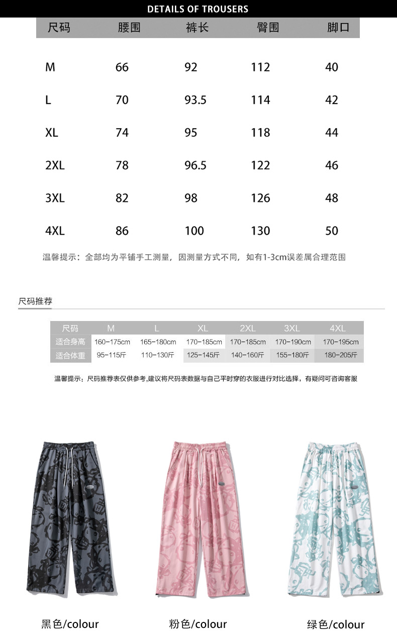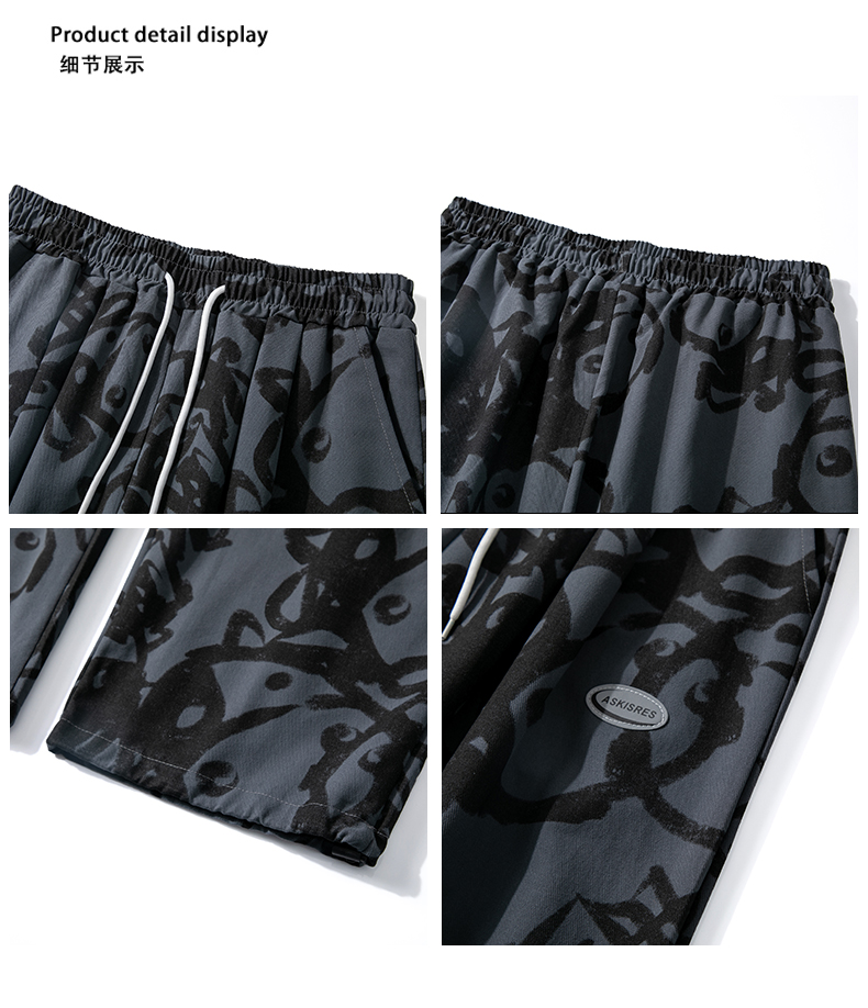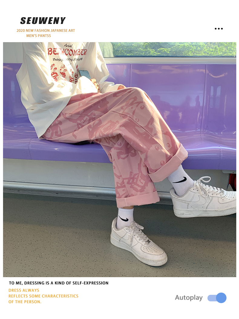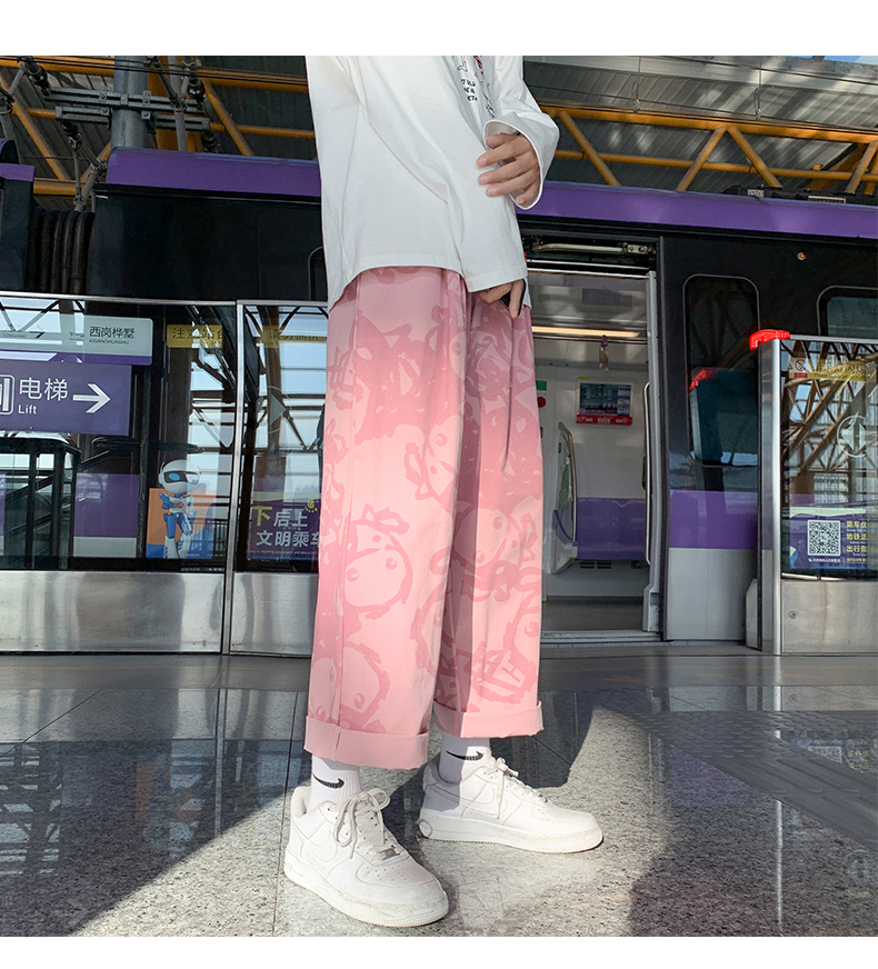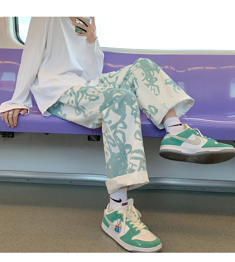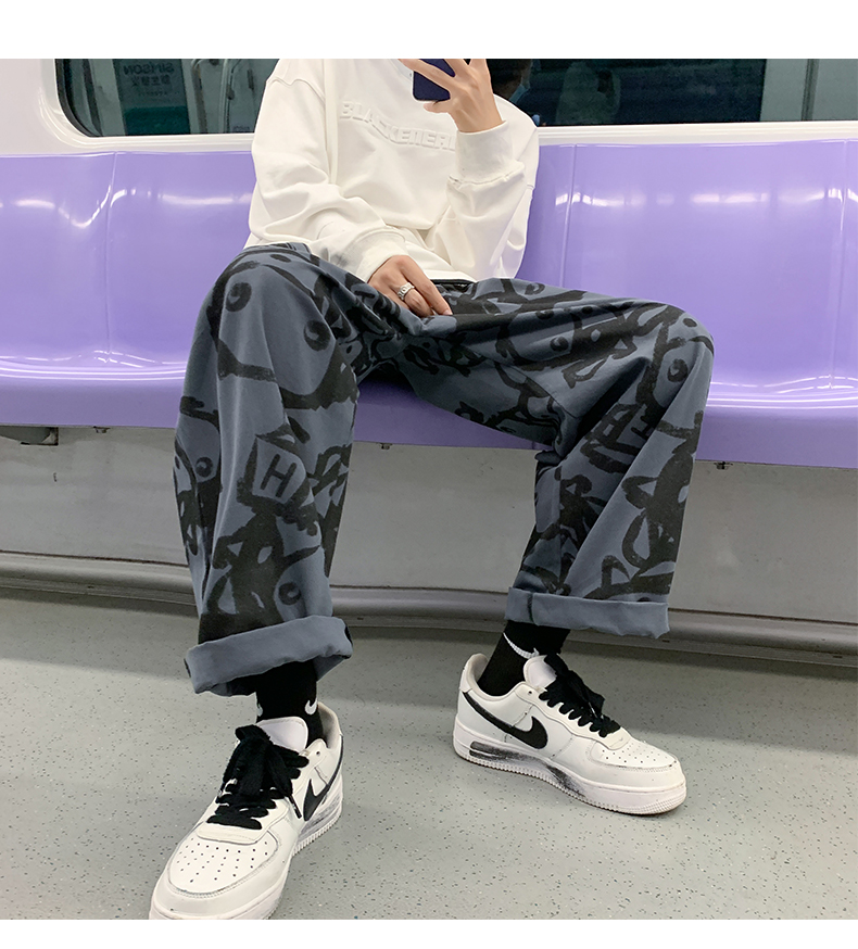涂鸦裤子男士薄款ins夏季宽松直筒港风潮流休闲春秋大码胖九分裤