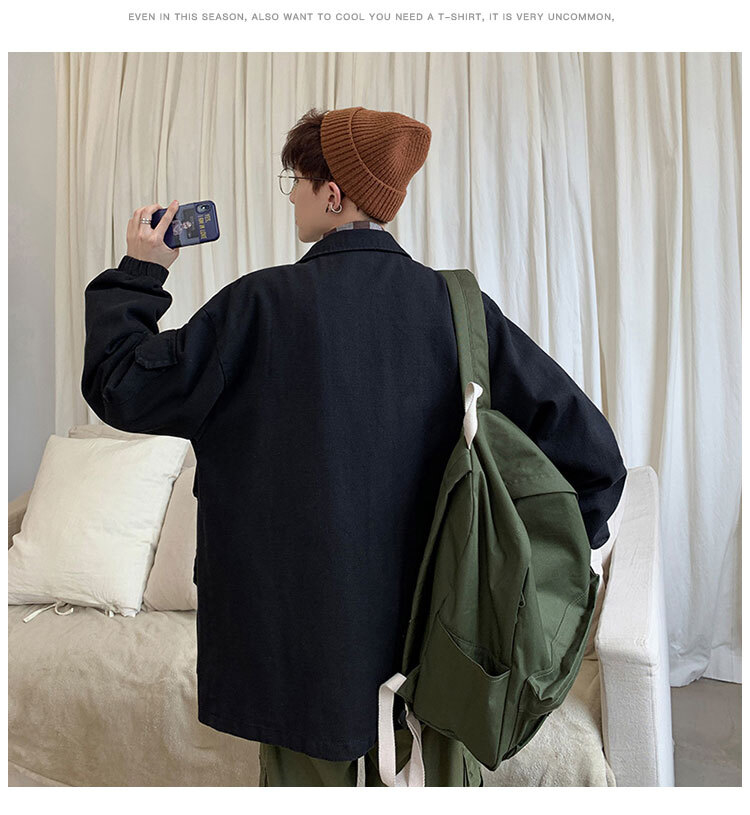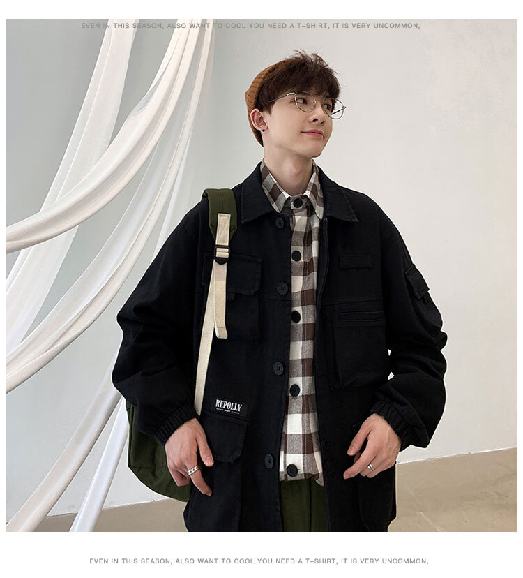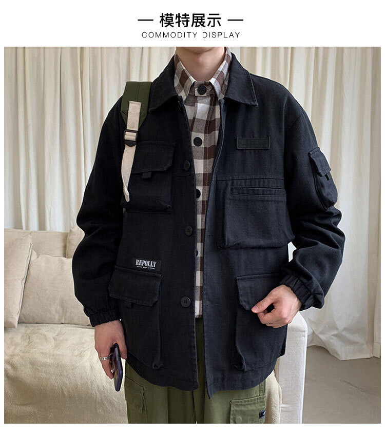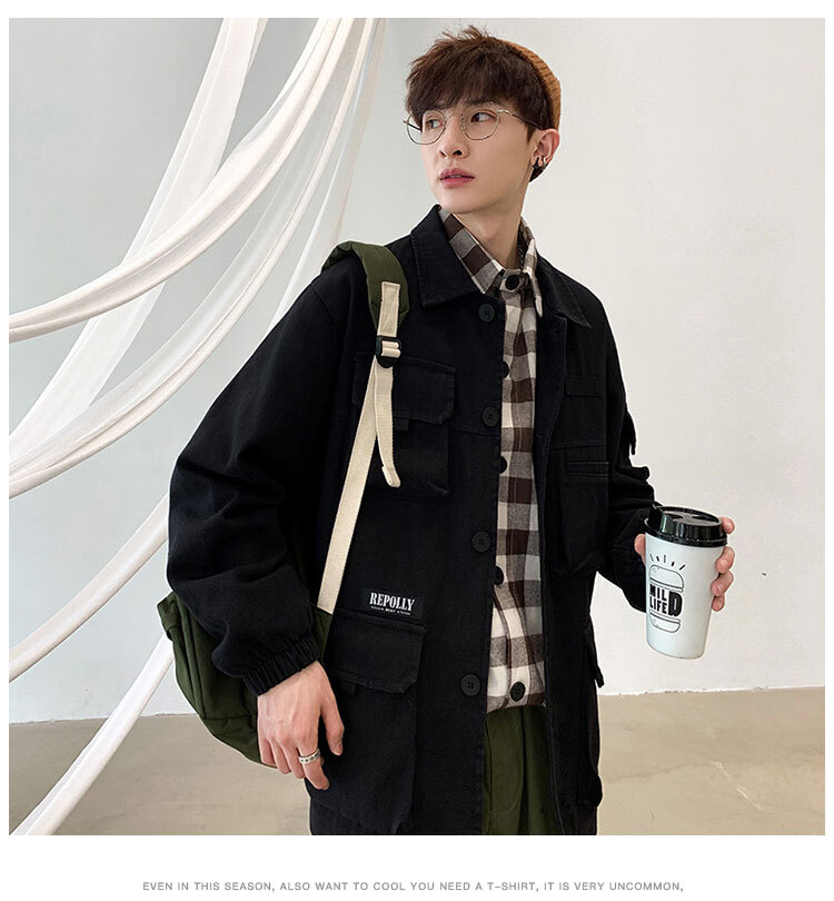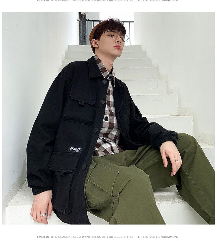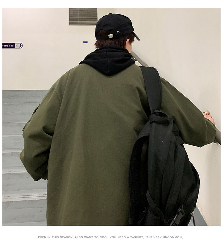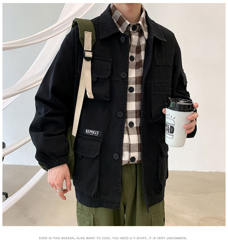 军绿色机能风工装外套男士ins潮牌春秋季大码宽松飞行员夹克高街