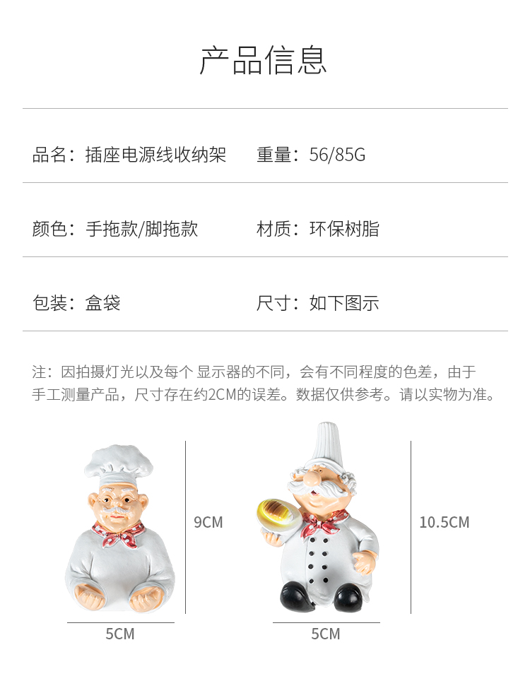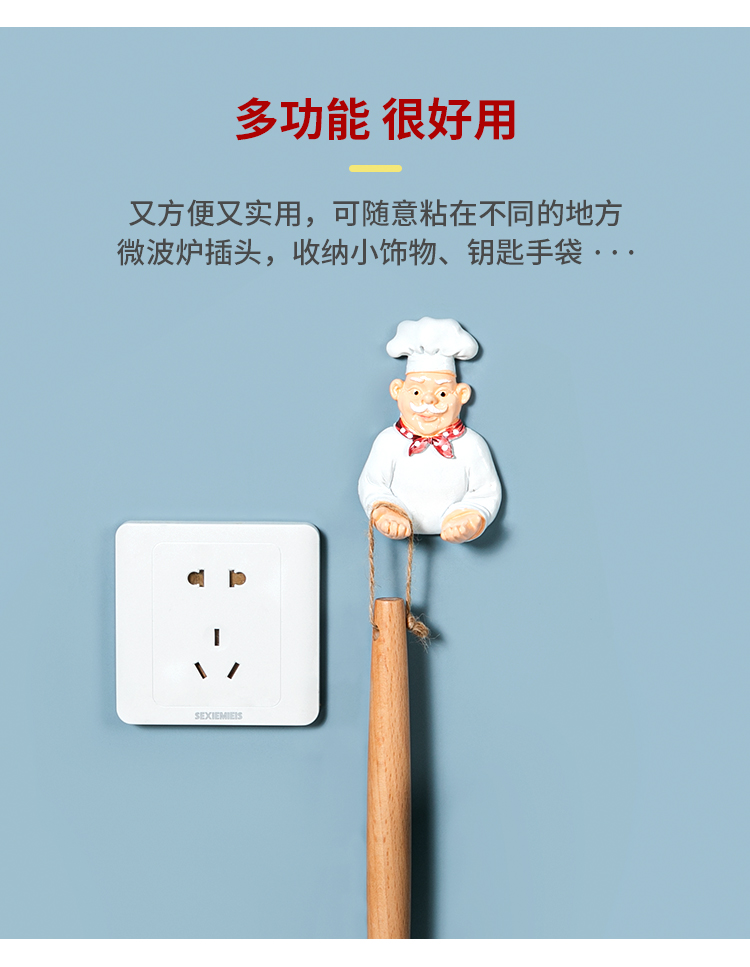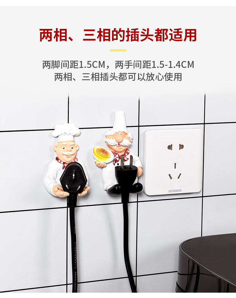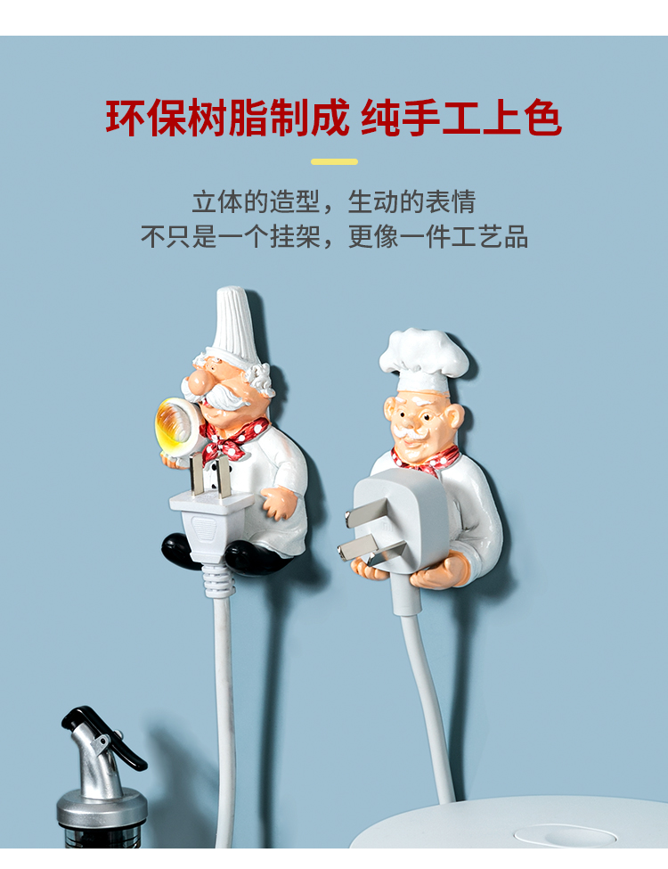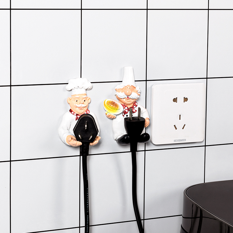卡通电源线收纳挂架厨房厨师插头挂钩强力粘钩创意插头整理收纳架