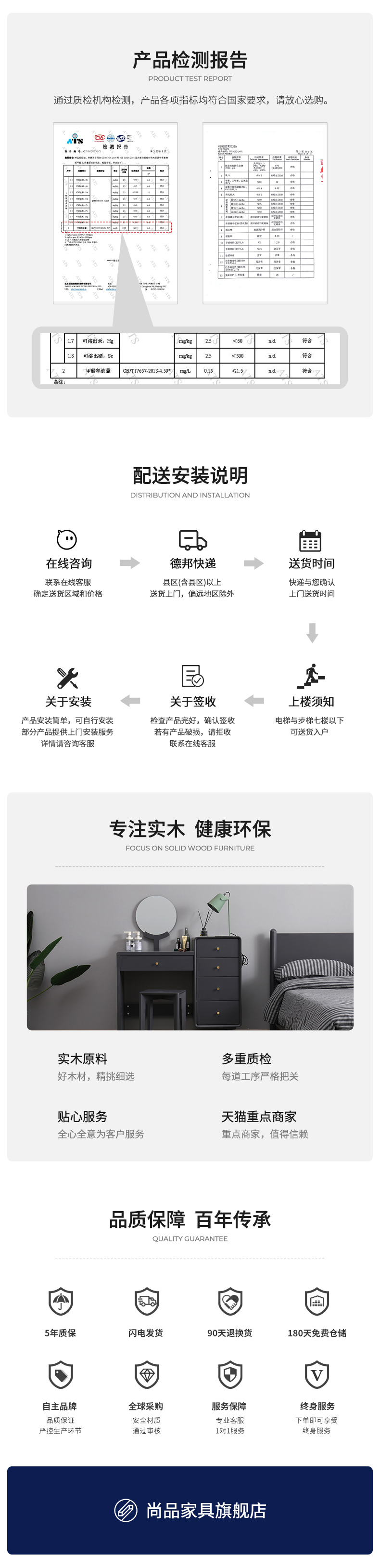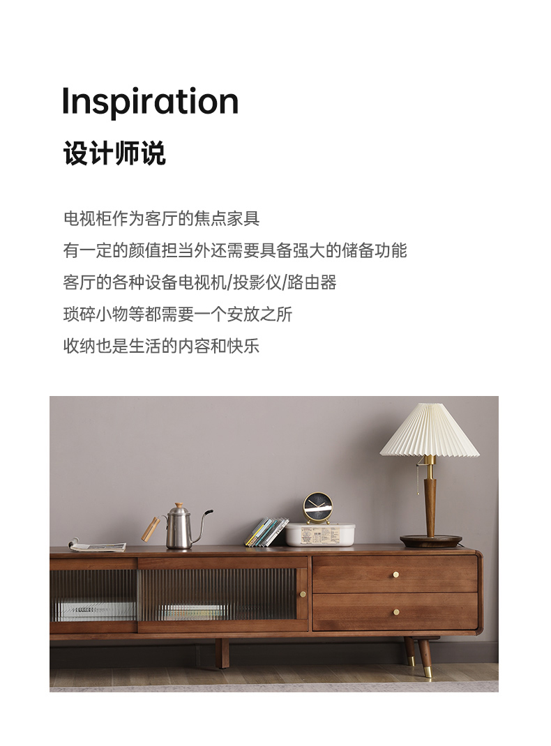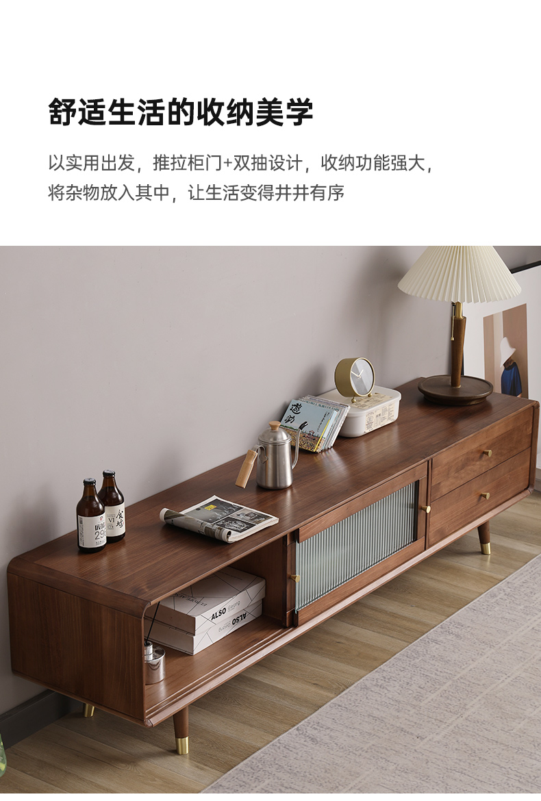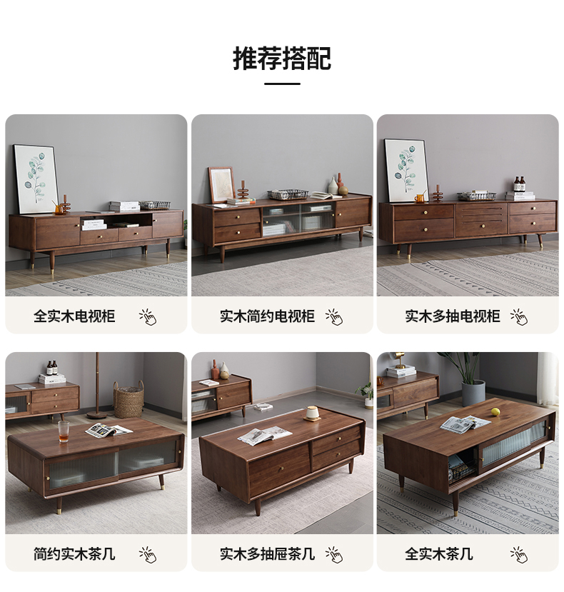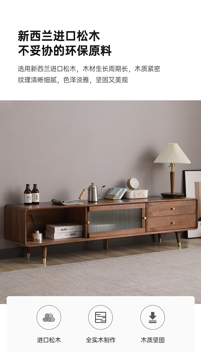 尚品实木电视柜茶几组合客厅墙柜1.5/1.8米小户型多功能复古北欧