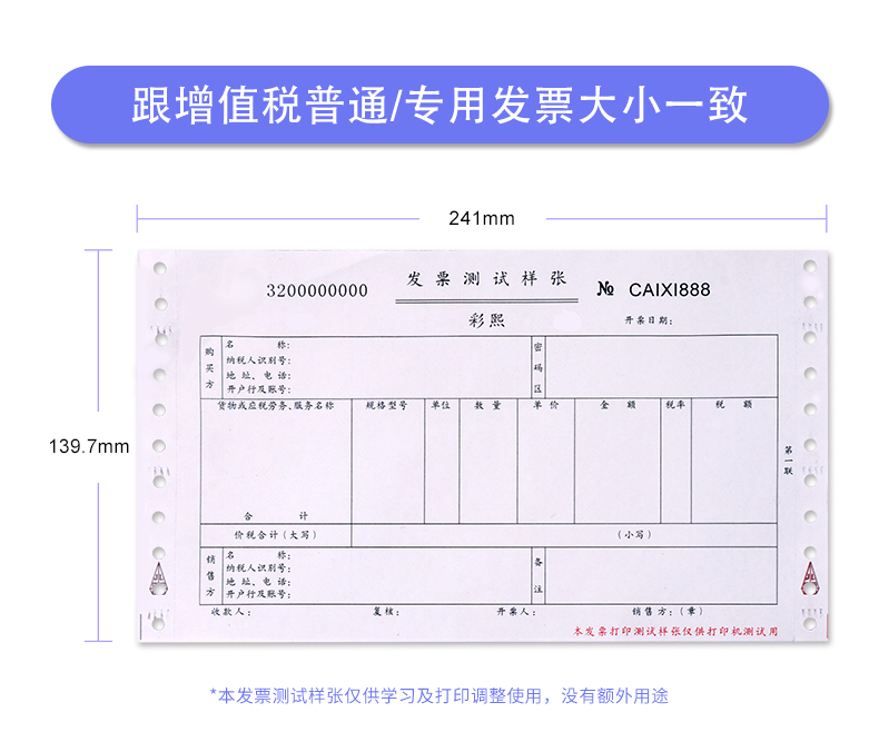 【发票测试样张】增值税普通/专用发票调测试套试打测试样张纸
