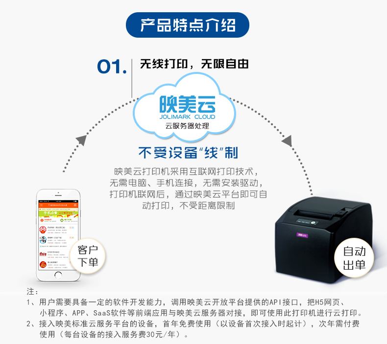 【映美MCP-350】热敏无线云打印机58/70/80mm小票据餐饮商超市收银服装批发电影票USB蓝牙WiFi以网口远程打印