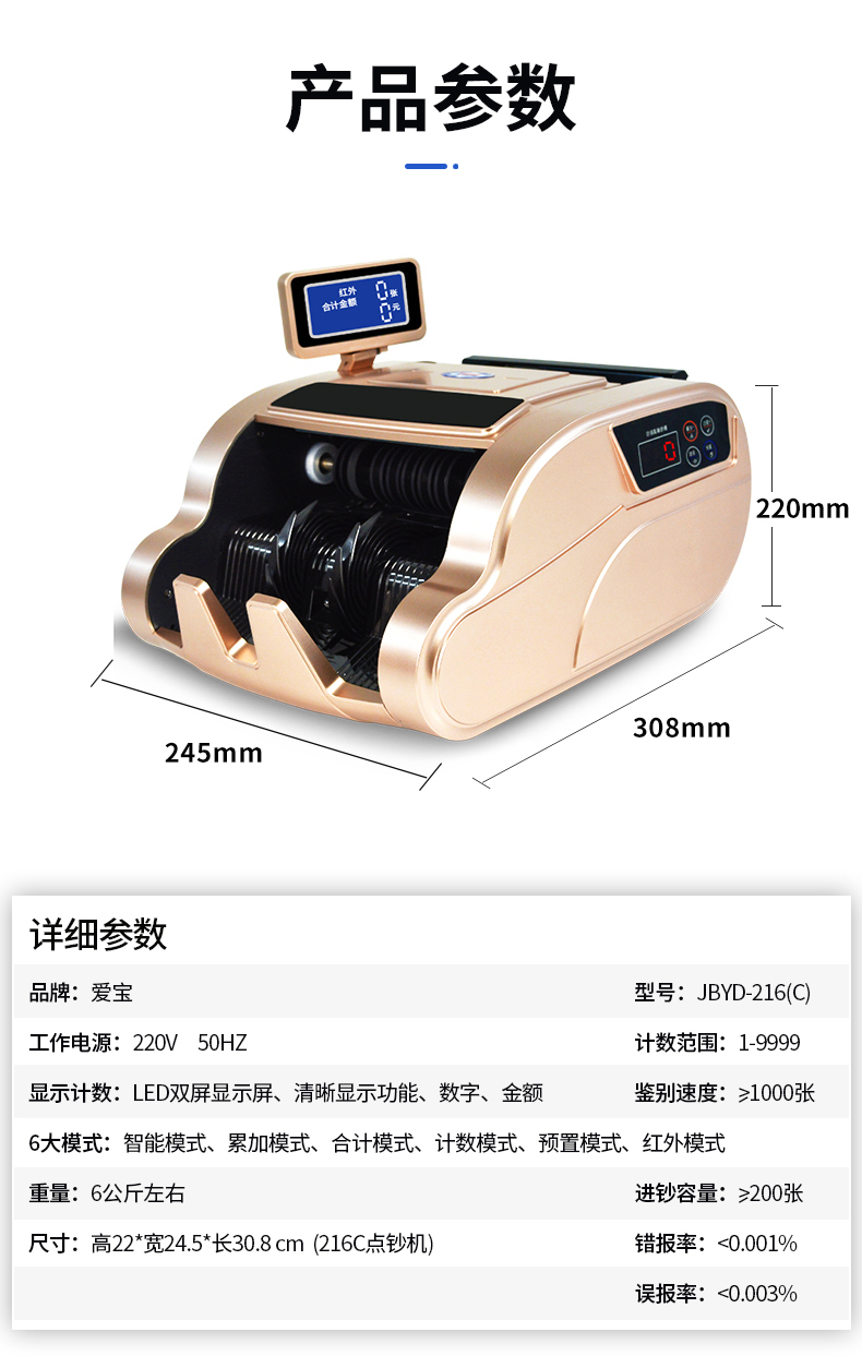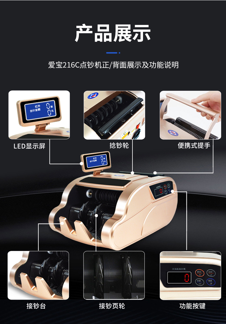 【2021升级款】爱宝219验钞机小型家用C类点钞机便携式人民币验钞机商用充电点钞机点钱机数钱机数钞混点机