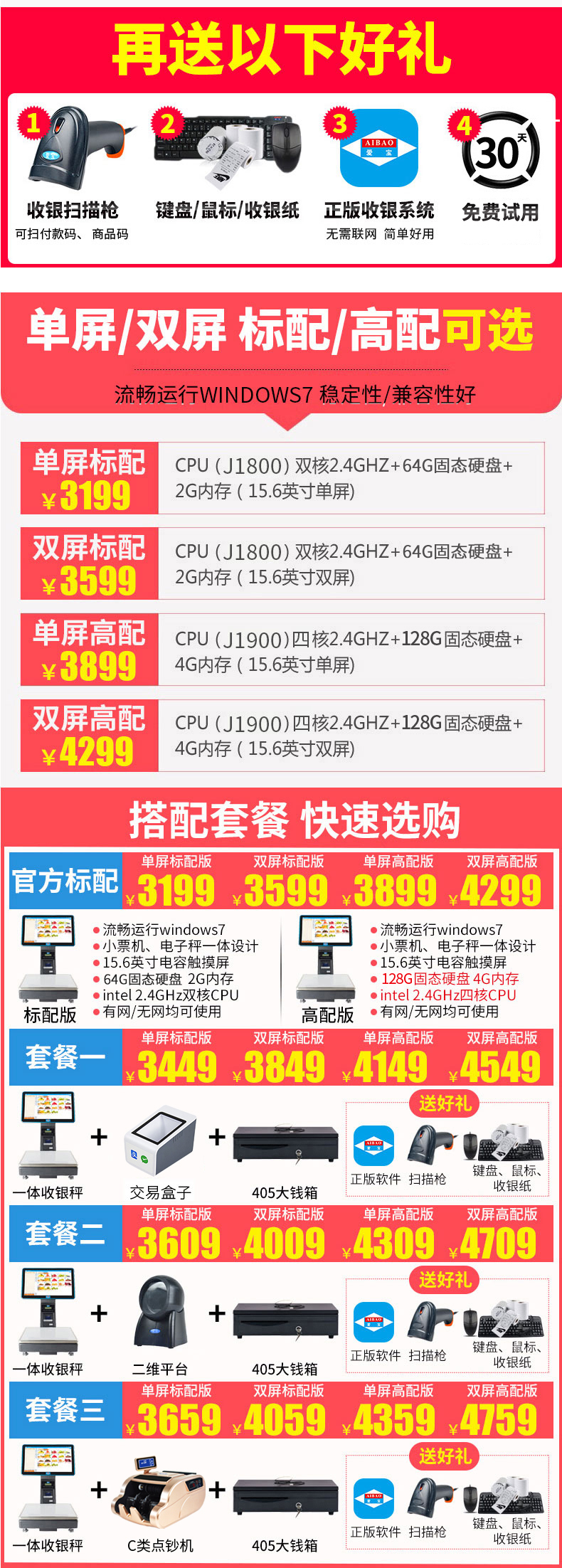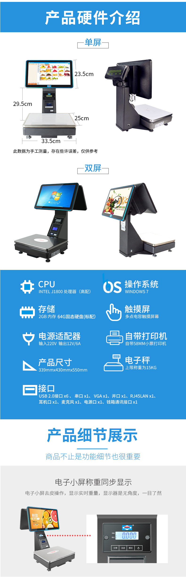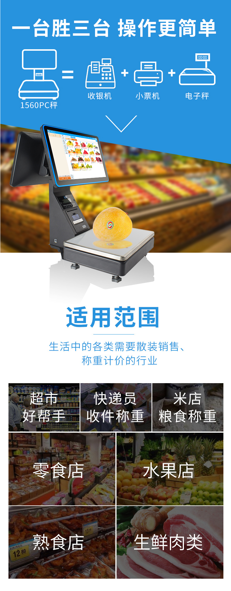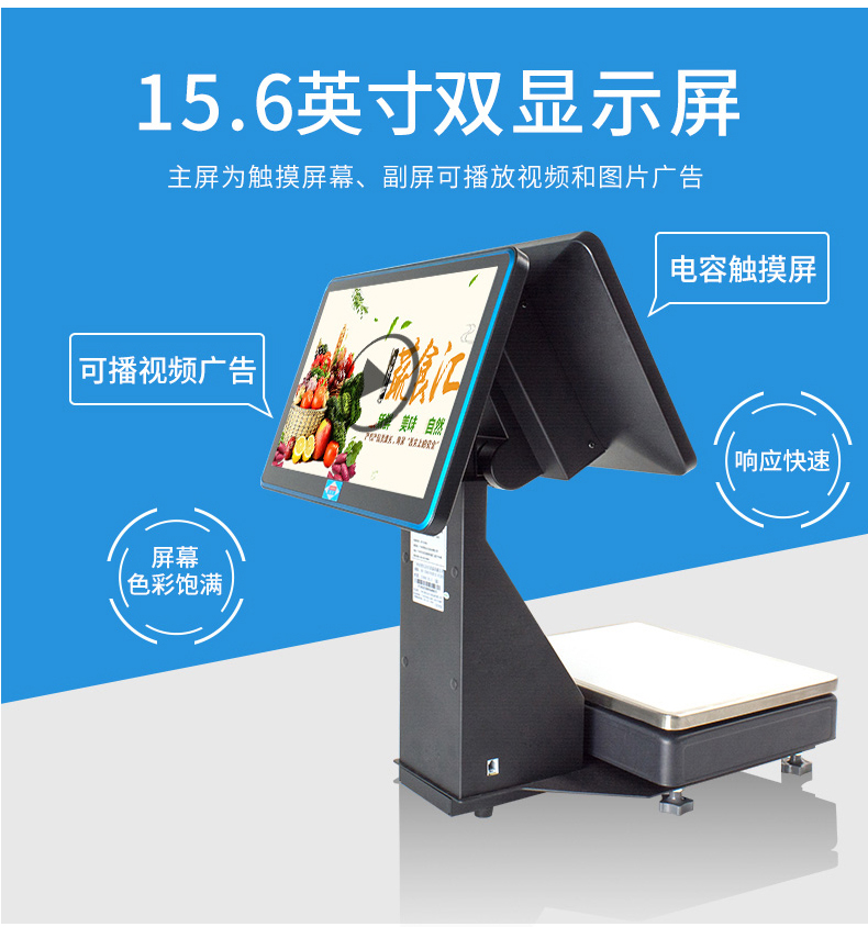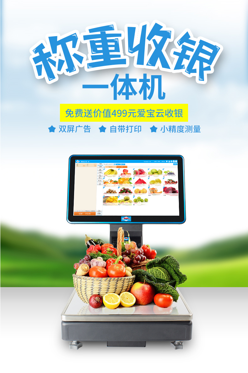 爱宝1560称重收银机一体机po收银秤系统水果生鲜超市零食卤肉熟食蔬菜食品店智能PC电子秤触摸双屏收款机