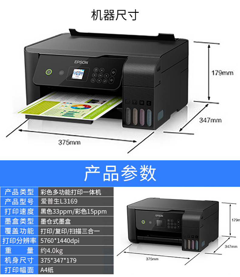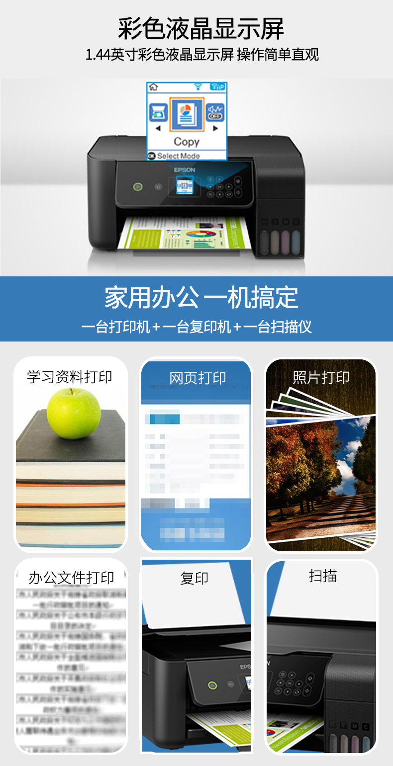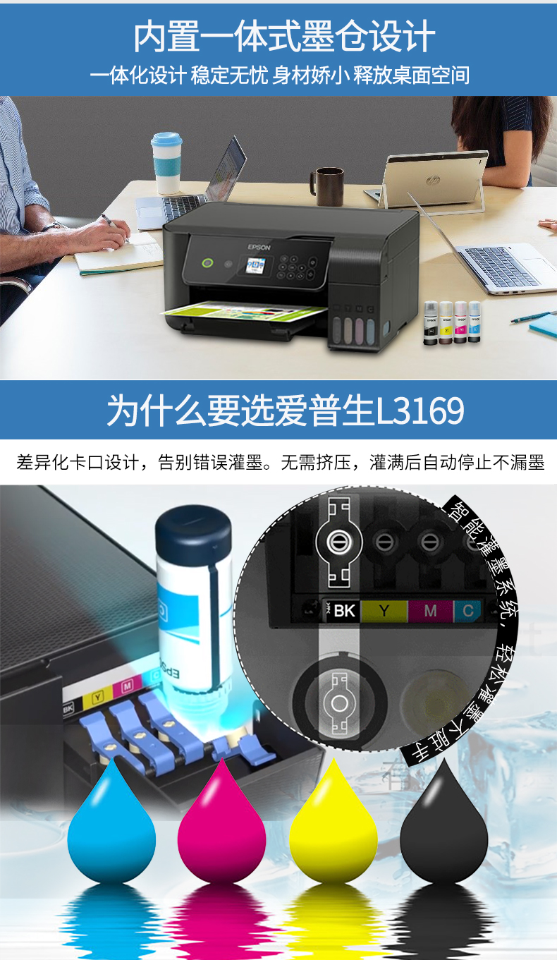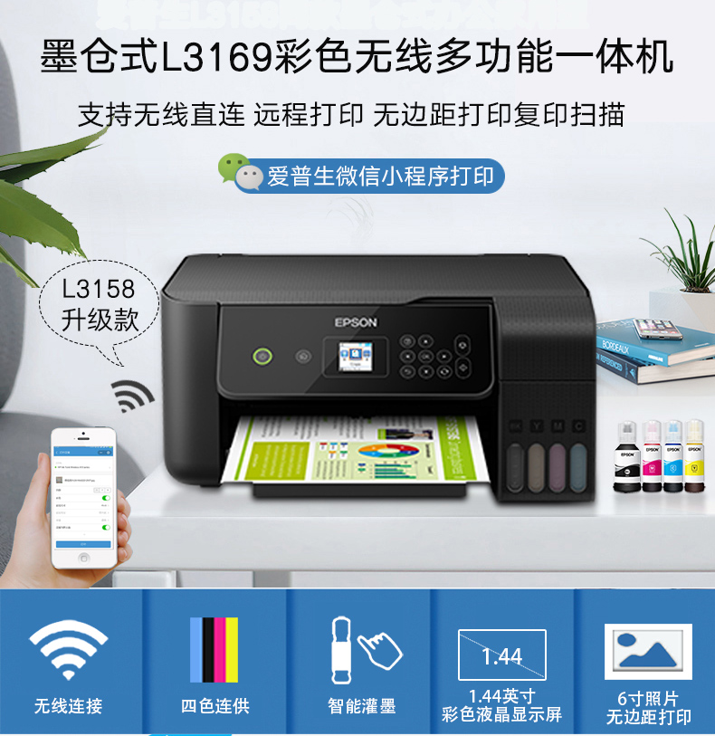 爱普生EPSON L3166/3168/3163/3161彩色打印机学生网课无线WIFI打印复印扫描一体机家庭学生作业照片喷墨打印