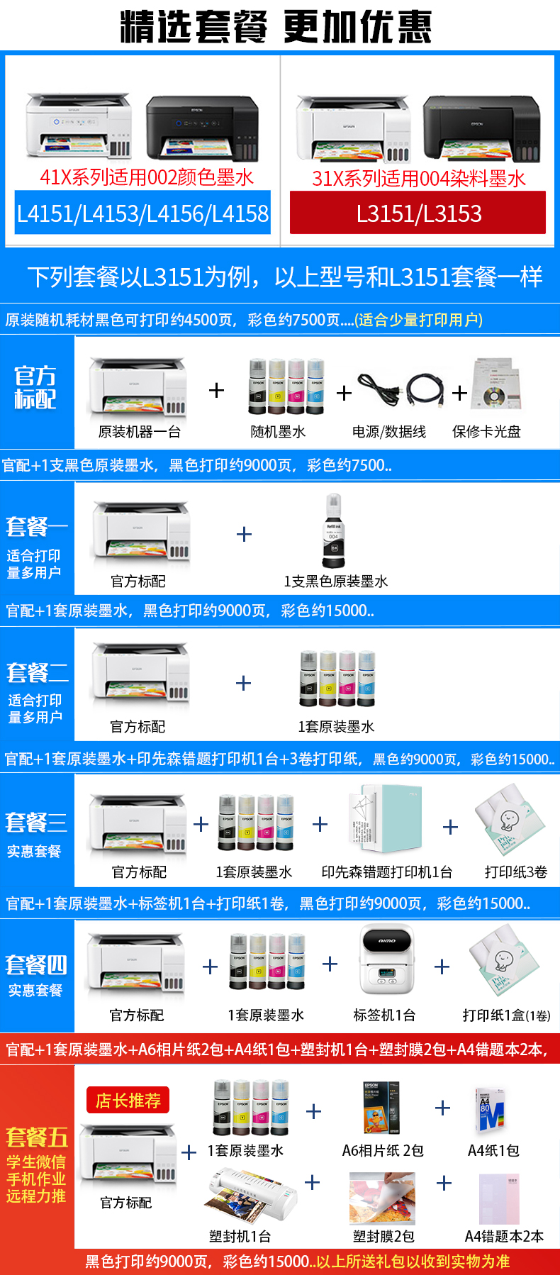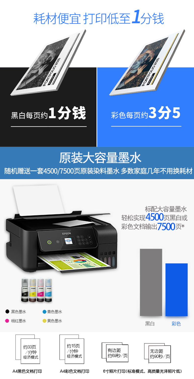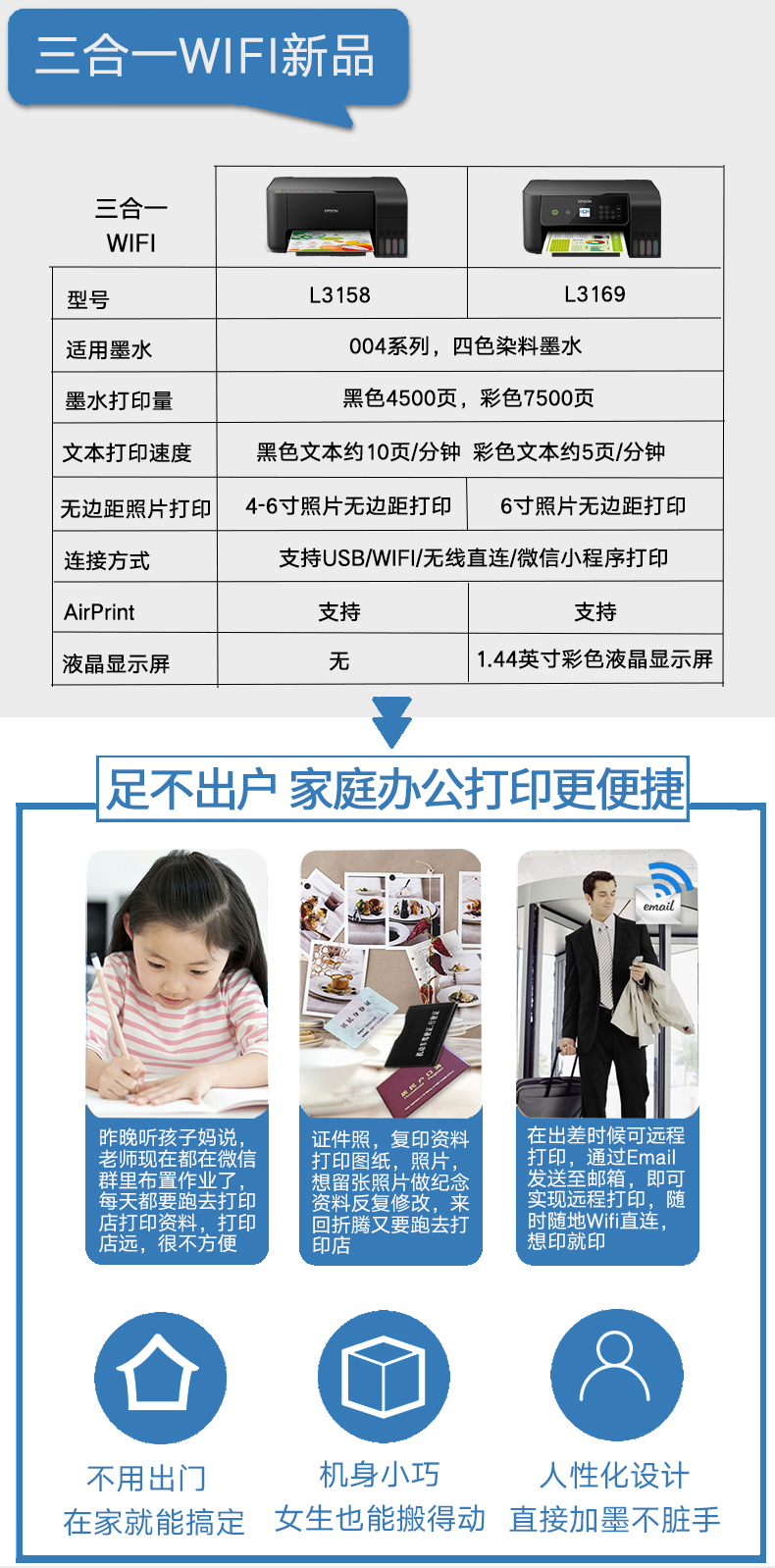 爱普生EPSON L3166/3168/3163/3161彩色打印机学生网课无线WIFI打印复印扫描一体机家庭学生作业照片喷墨打印