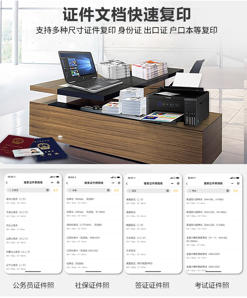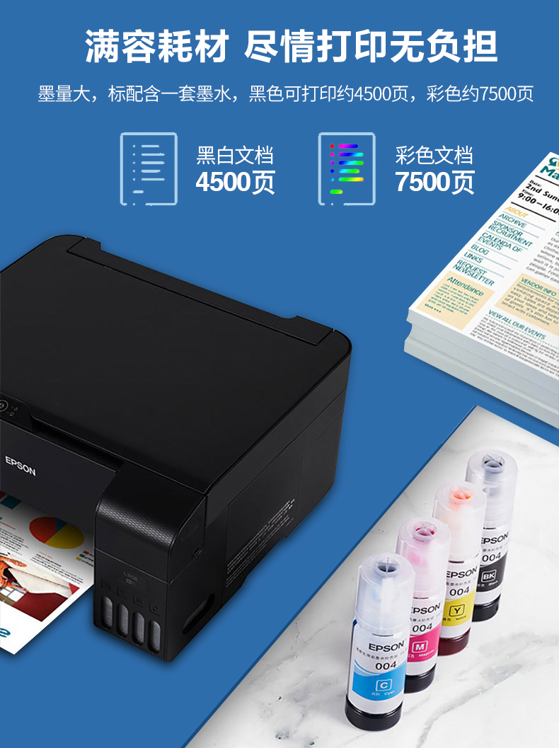 爱普生L3151/L3153/L4168打印机 家用 小型彩色照片打印机复印一体机L4165/L4151无线WIFI喷墨家用相片L4153