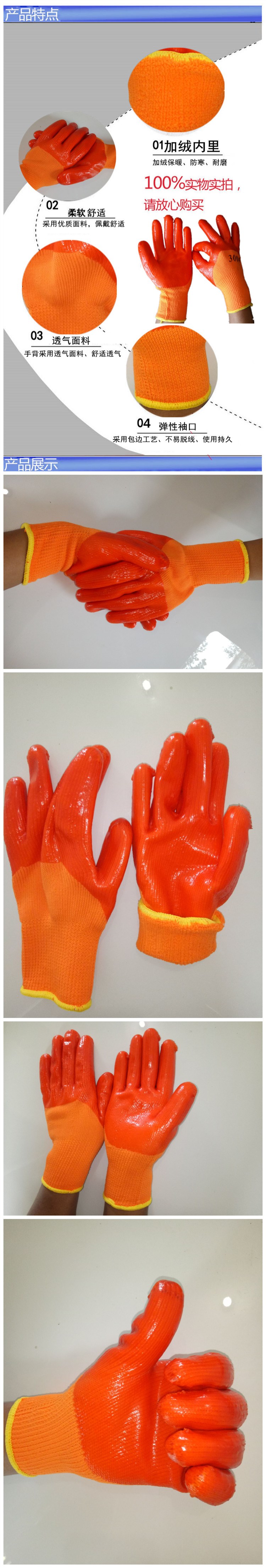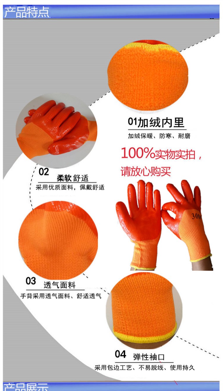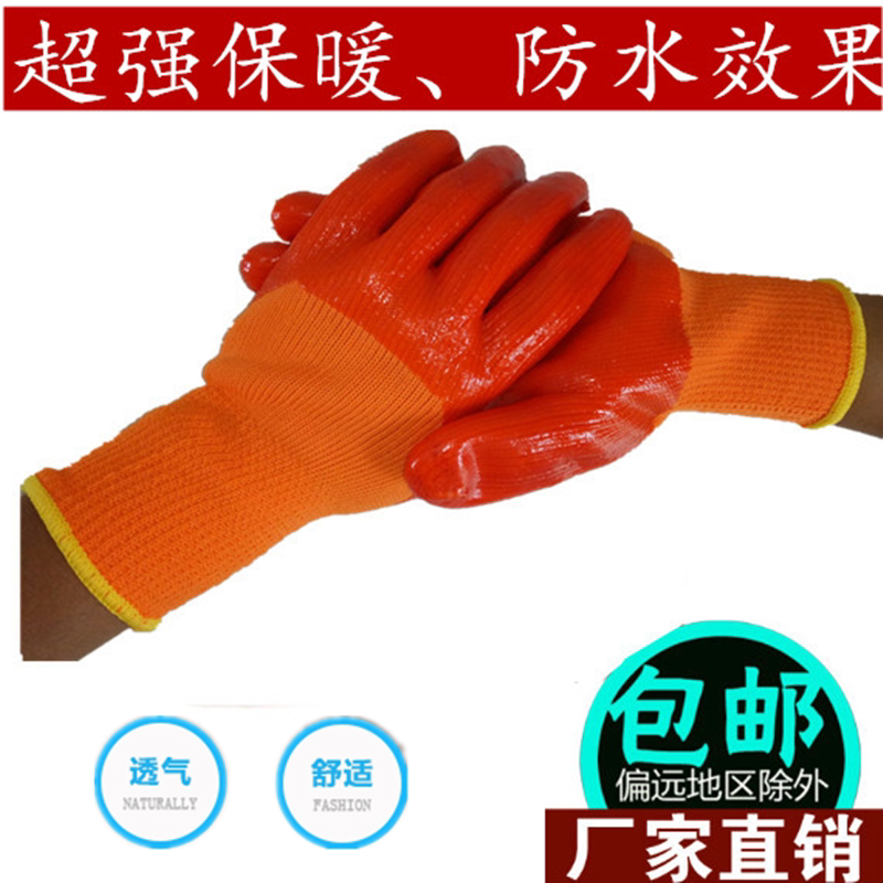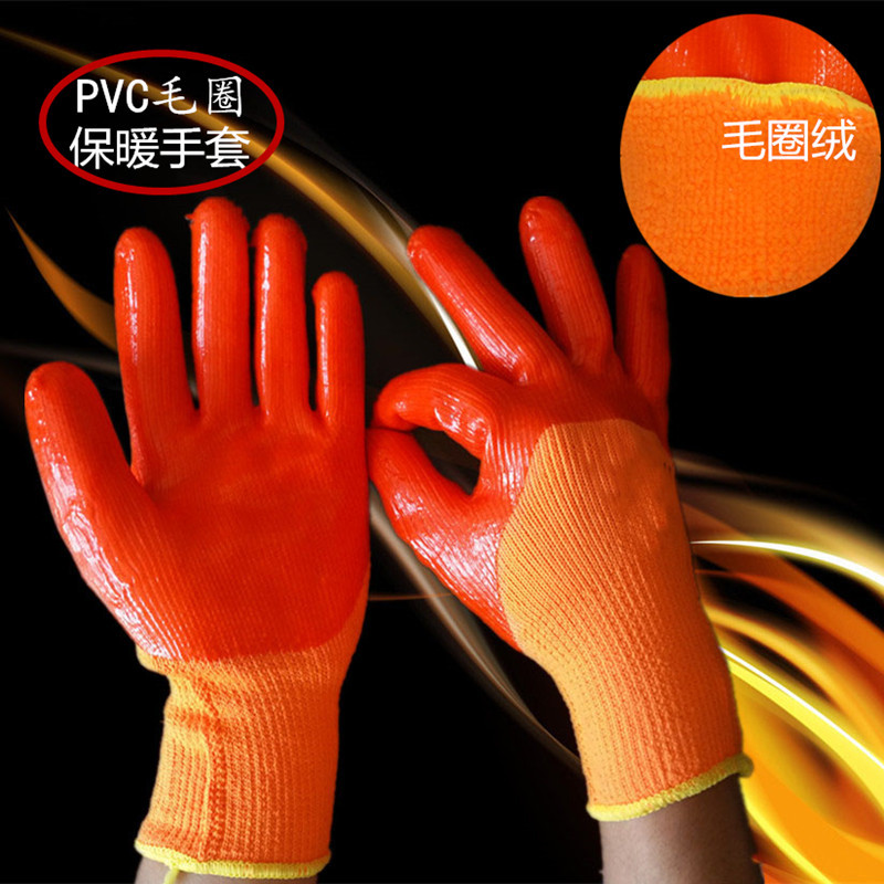 劳保手套加厚PVC满挂胶全浸胶耐磨防油防水防寒保温加绒毛圈手套