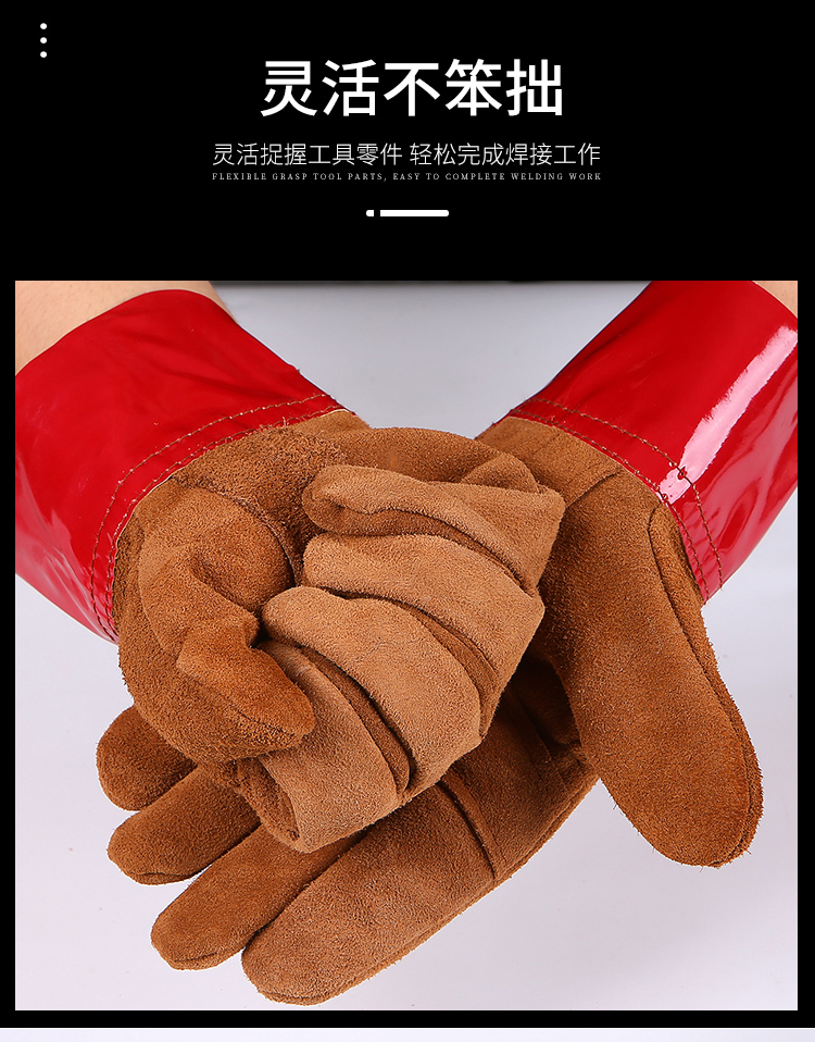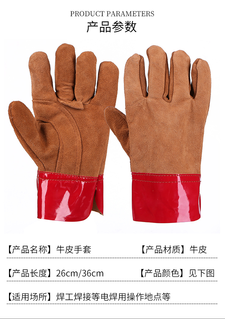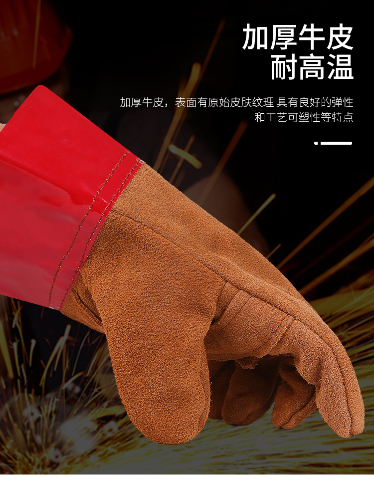 牛皮电焊手套耐高温防烫长短款保暖柔软耐磨焊工焊接隔热防护手套