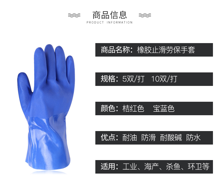 橡胶止滑劳保工作手套 全胶颗粒防水防滑耐磨防油耐酸碱防护用品
