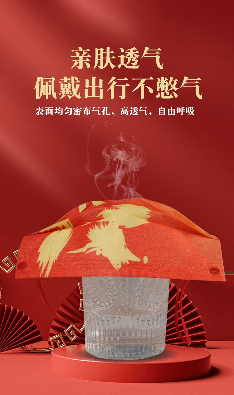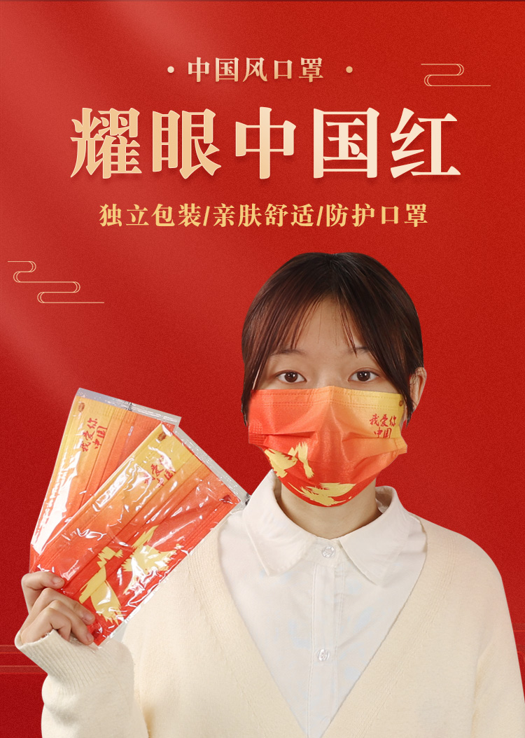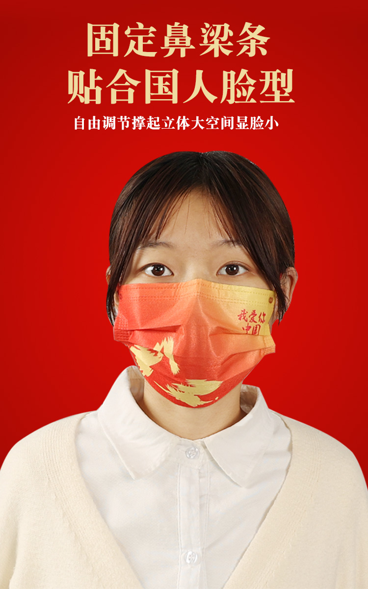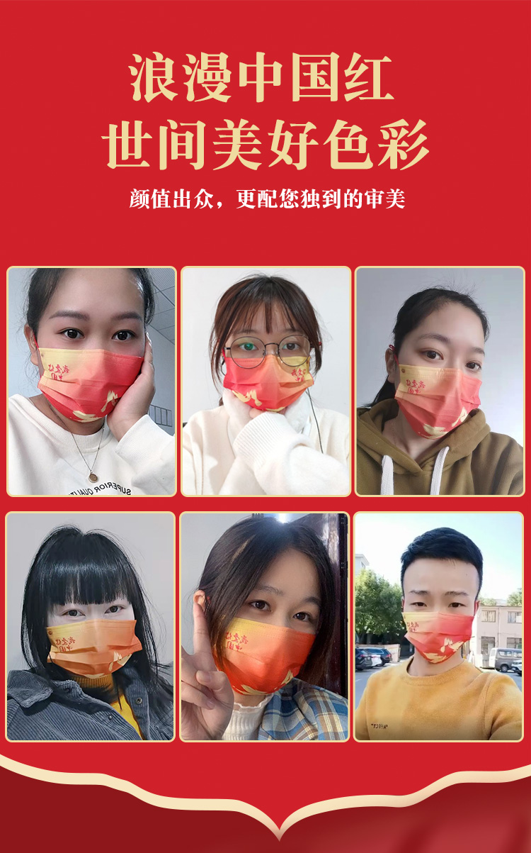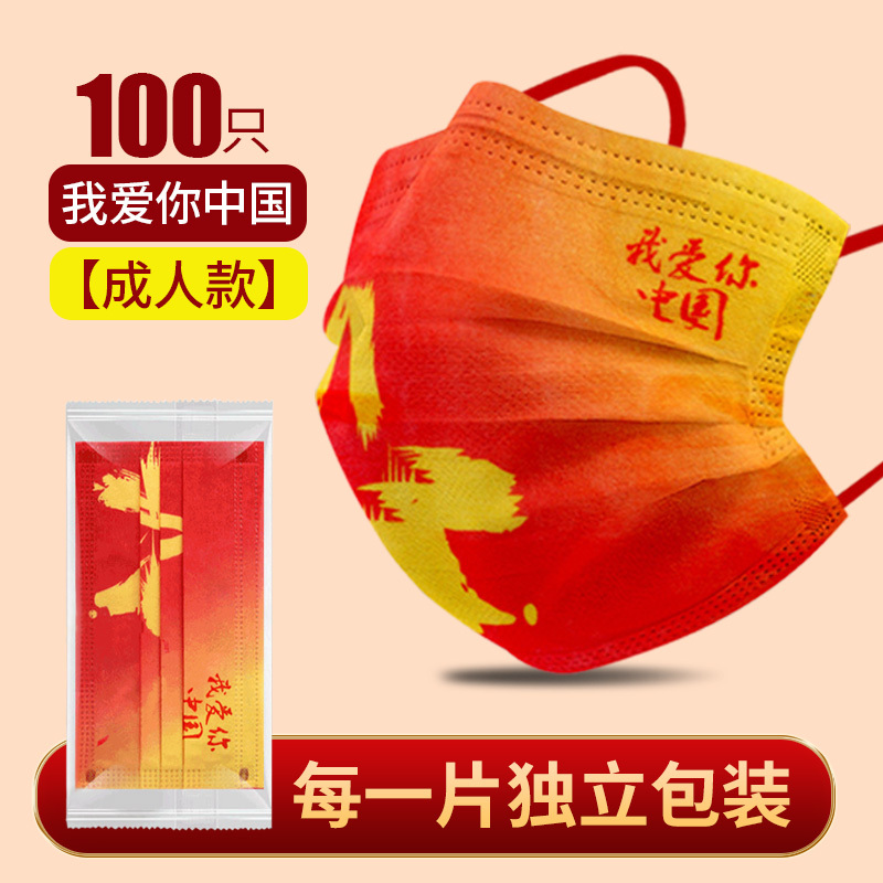 一次性三层口罩2021新款时尚版中国红男国潮风我爱你女创意个性男