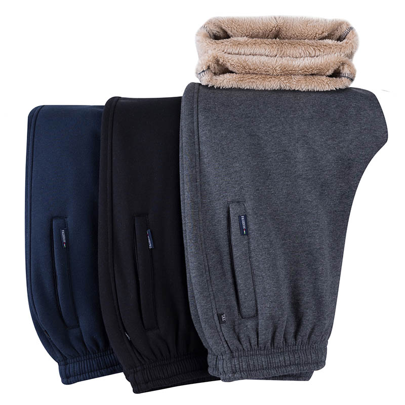 加绒运动裤男羊羔绒加厚中老年人松紧腰休闲长裤爸爸裤子宽松棉裤