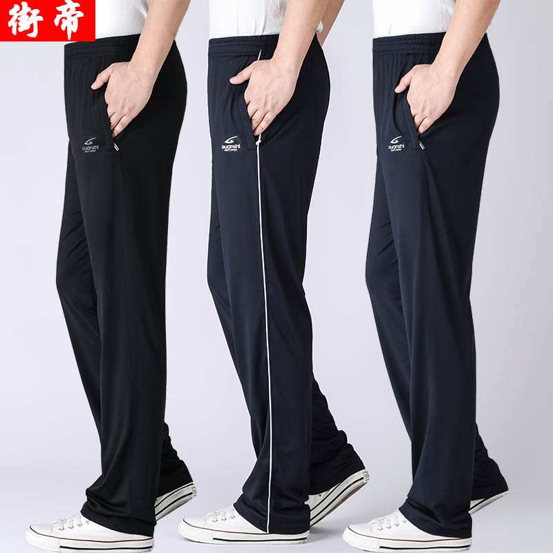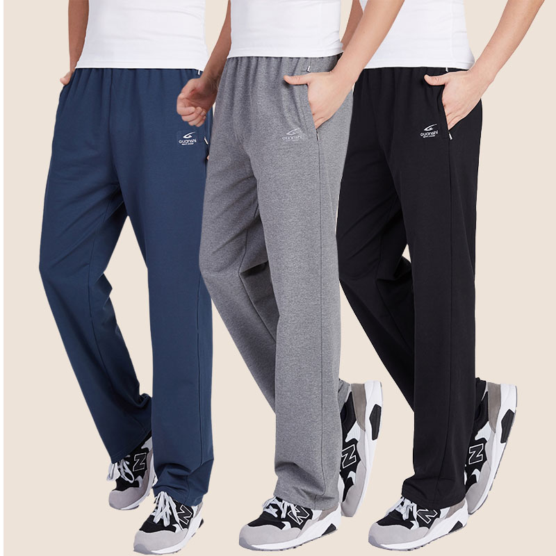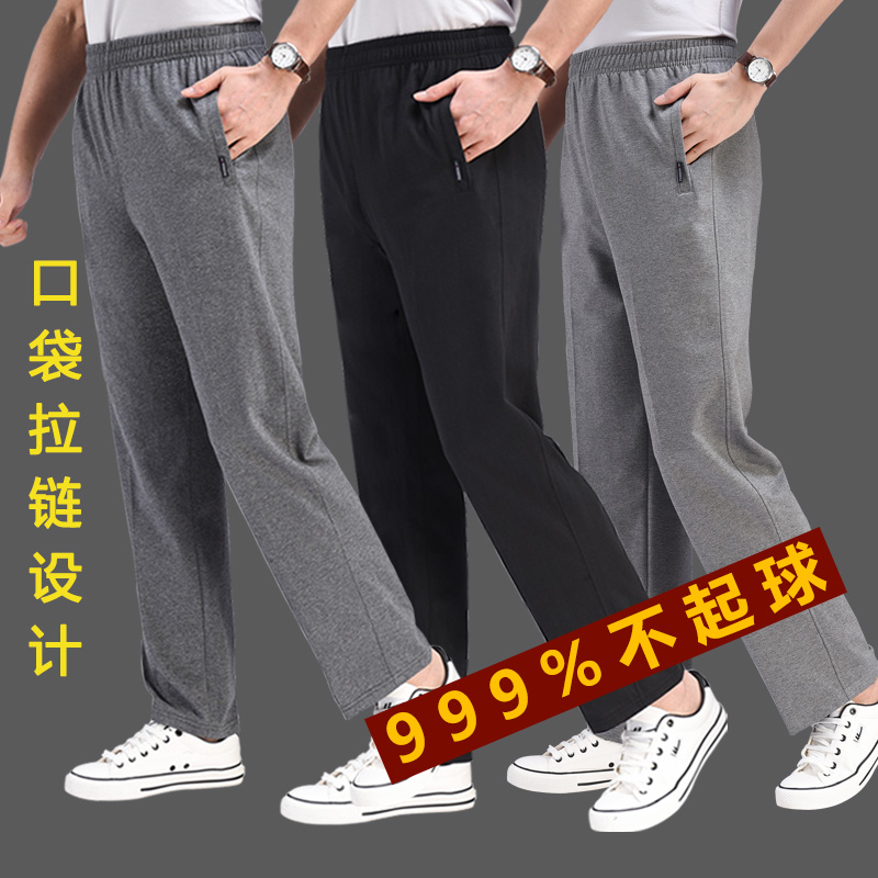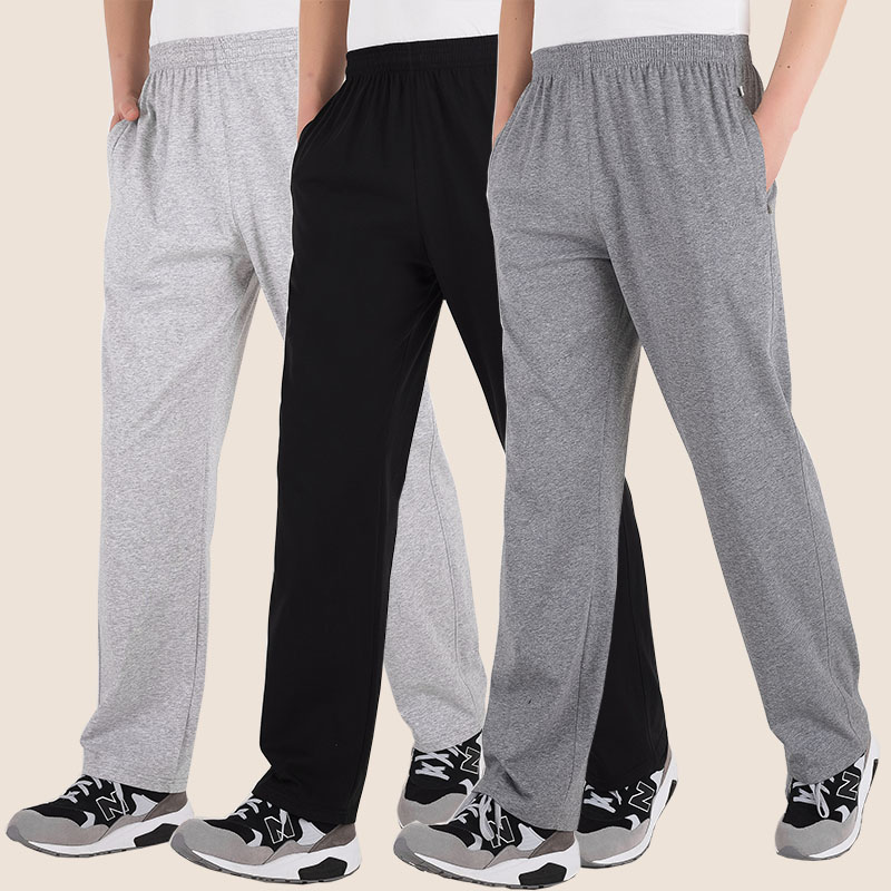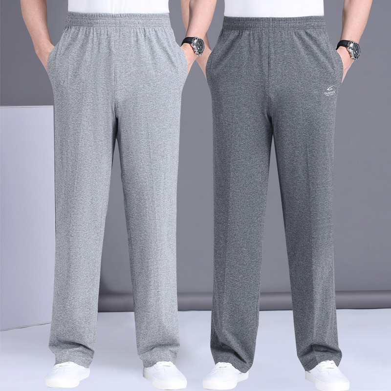 夏季薄款运动裤男长裤棉针织休闲裤宽松直筒卫裤大码青中年跑步裤