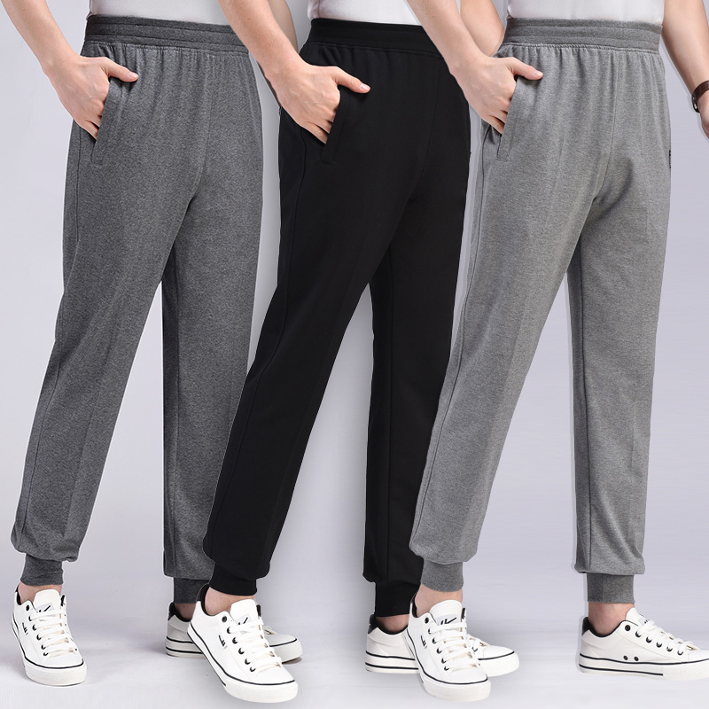 春秋款运动裤男士纯棉夏季薄中老年束脚收口长裤子小脚宽松休闲裤