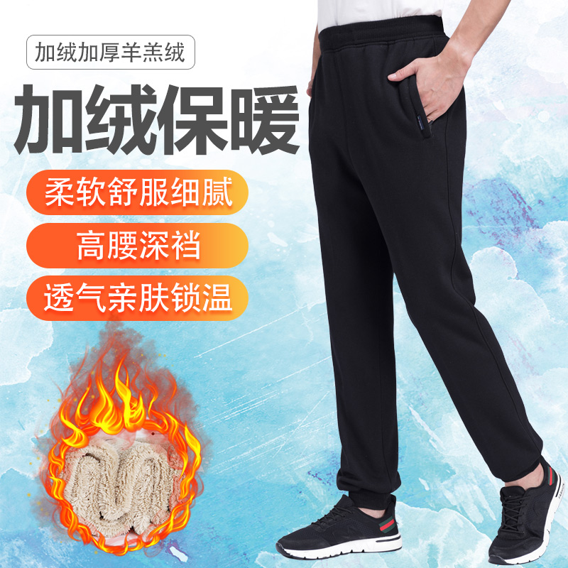冬款束脚裤男加绒加厚运动裤男宽松长裤子羊羔绒中老年大码休闲裤