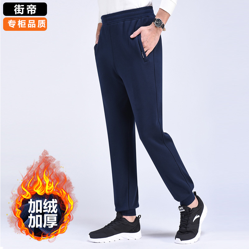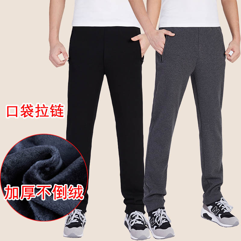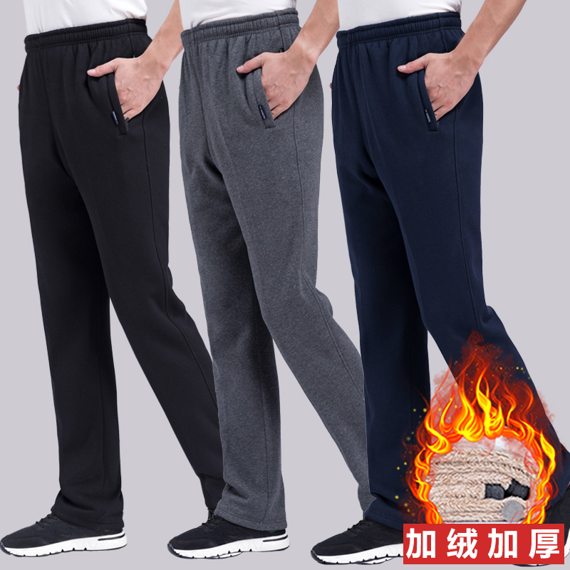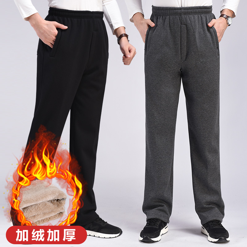 秋冬季运动裤男加绒加厚长裤直筒宽松棉休闲裤中青年修身保暖卫裤