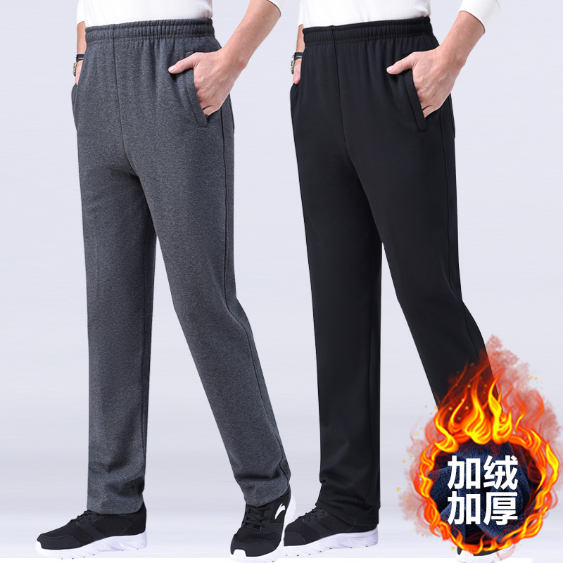 加绒运动裤男秋冬季加厚宽松纯棉卫裤外穿爸爸裤子中老年人休闲裤