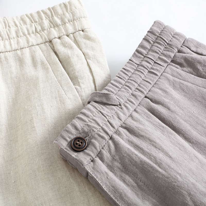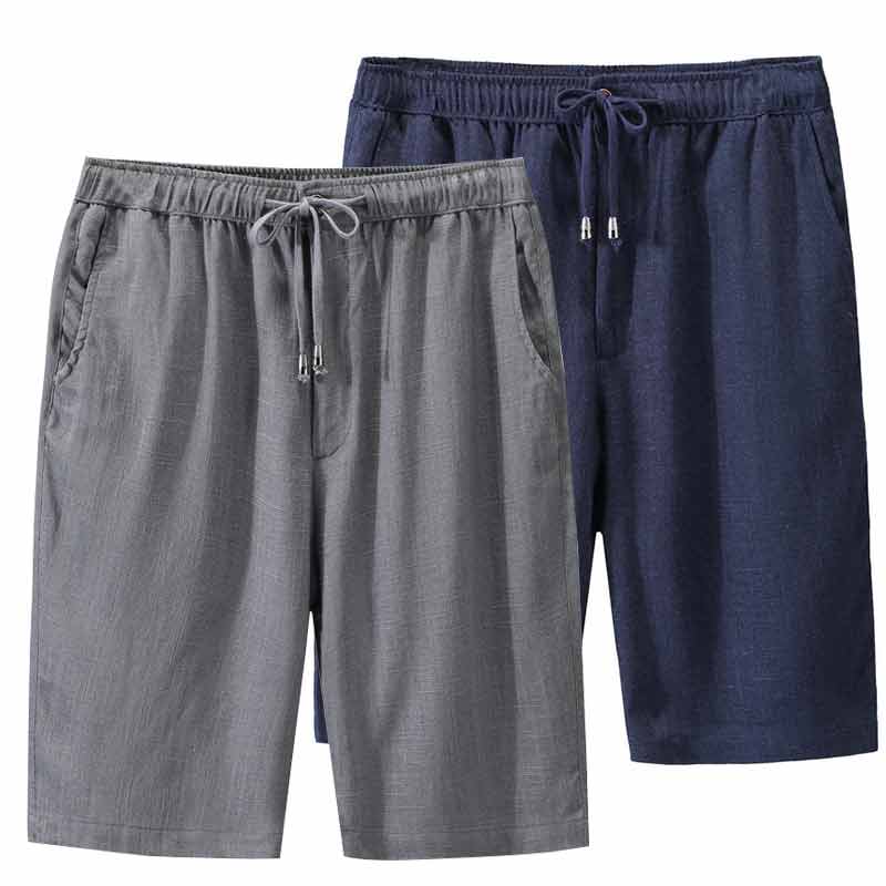 夏季薄款亚麻短裤男士宽松大码中年松紧腰五分裤爸爸休闲中裤男装