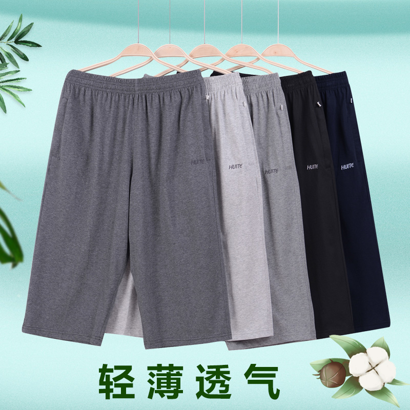 男运动短裤外穿夏季薄款纯棉中老年五分裤宽松大码休闲中裤大裤衩