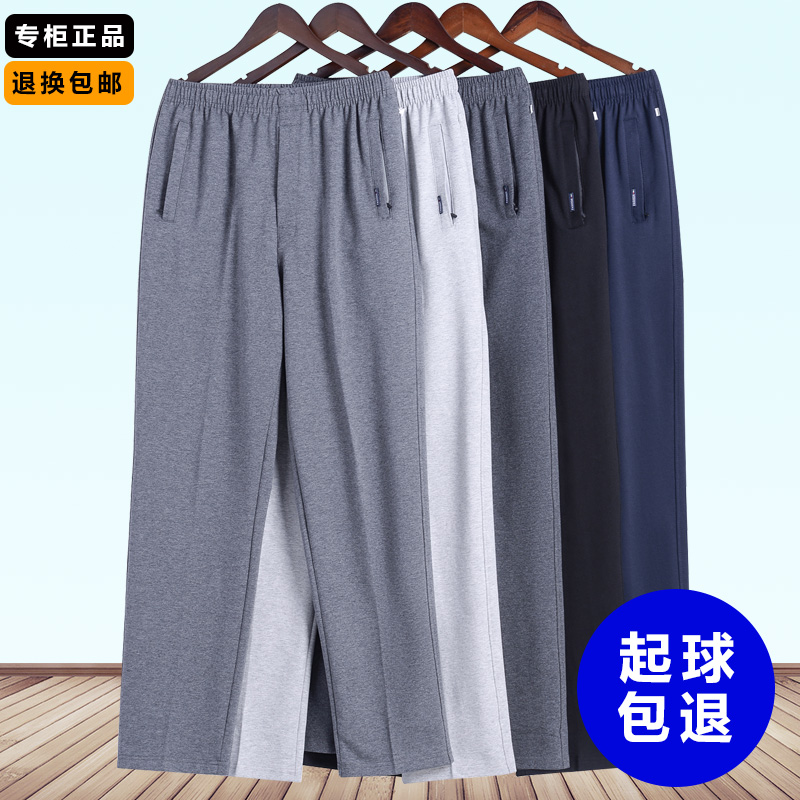 中老年运动裤男宽松直筒长裤松紧腰爸爸裤子春夏季薄款休闲裤卫裤