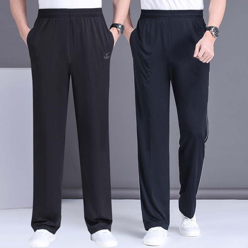 春秋宽松运动裤男长裤加大码直筒弹力南韩丝中老年休闲裤薄款男裤
